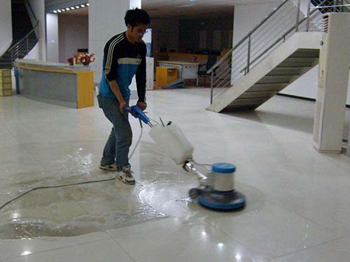 清洗处理:使用机械、化学或物理方式进行清洗;去除污渍;冲洗地面。